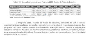 É contraditória, por sinal, a alcunha de “Regime Fiscal Sustentável” conferida à Lei Complementar 200/2023, quando se percebe que a Gestão de Riscos de Desastres (Programa 2218, que compreende ações de prevenção e controle, bem como de resposta aos desastres já consumados) não alcançou sequer o patamar de R$1,5 bilhão em despesas pagas [3] na execução orçamentária de 2023.