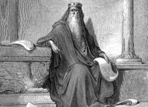 Na conhecida narrativa bíblica, duas mulheres comparecem diante de Salomão e pedem que o que rei declare quem é a mãe do bebê que trazem consigo. Impossibilitado de conferir a verdade dos fatos, ele manda trazer uma espada, dividir a criança ao meio e entregar a metade a cada uma.