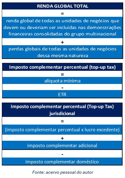 Para que se tenha uma ideia de como os cálculos do resultado tributável são intrincados, no Capítulo 5 do Inclusive Framework do Pilar 2 a OCDE traz a forma de determinação do imposto complementar de cada uma das empresas-filhas situadas em países de baixa tributação, com uma série de ajustes de base. Algumas dessas variáveis são o lucro excedente, os impostos ajustados (diferidos) e as exclusões e deduções relativas à renda líquida da companhia.