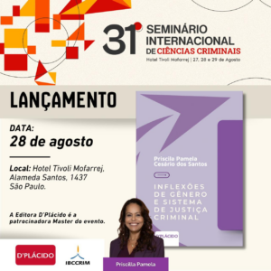 Priscila Pamela Santos, advogada criminalista e sócia fundadora do Priscila Pamela Santos Advocacia, lança nesta quinta-feira (28/8), o livro Inflexões de gênero e sistema de justiça criminal .