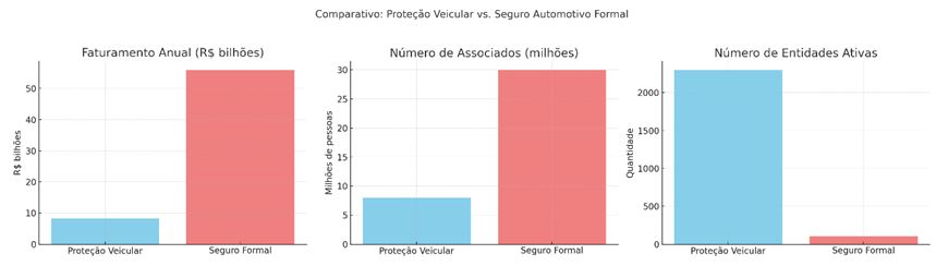 Segundo estimativas divulgadas pela Federação Nacional de Seguros Gerais (FenSeg), valendo-se de estudo realizado pela Ernest & Young, em 2022 havia 687 associações de proteção veicular ativas, 4,5 milhões de associados nessas entidades e um faturamento anual estimado entre R$ 7,1 bilhões e R$ 9,4 bilhões.