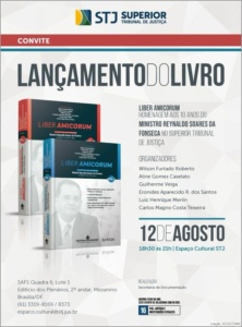 O livro Liber amicorum: homenagem aos 10 anos do ministro Reynaldo Soares da Fonseca no Superior Tribunal de Justiça (Editora Mizuno) será lançado em 12 de agosto no Espaço Cultural do STJ, em Brasília.